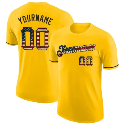Custom Yellow Vintage USA Flag-Black Performance T-Shirt