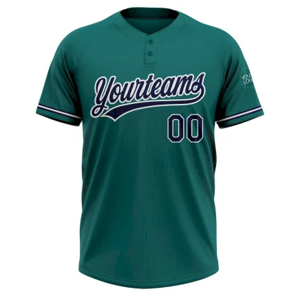 Custom Teal Navy-White Two-Button Unisex Softball Jersey