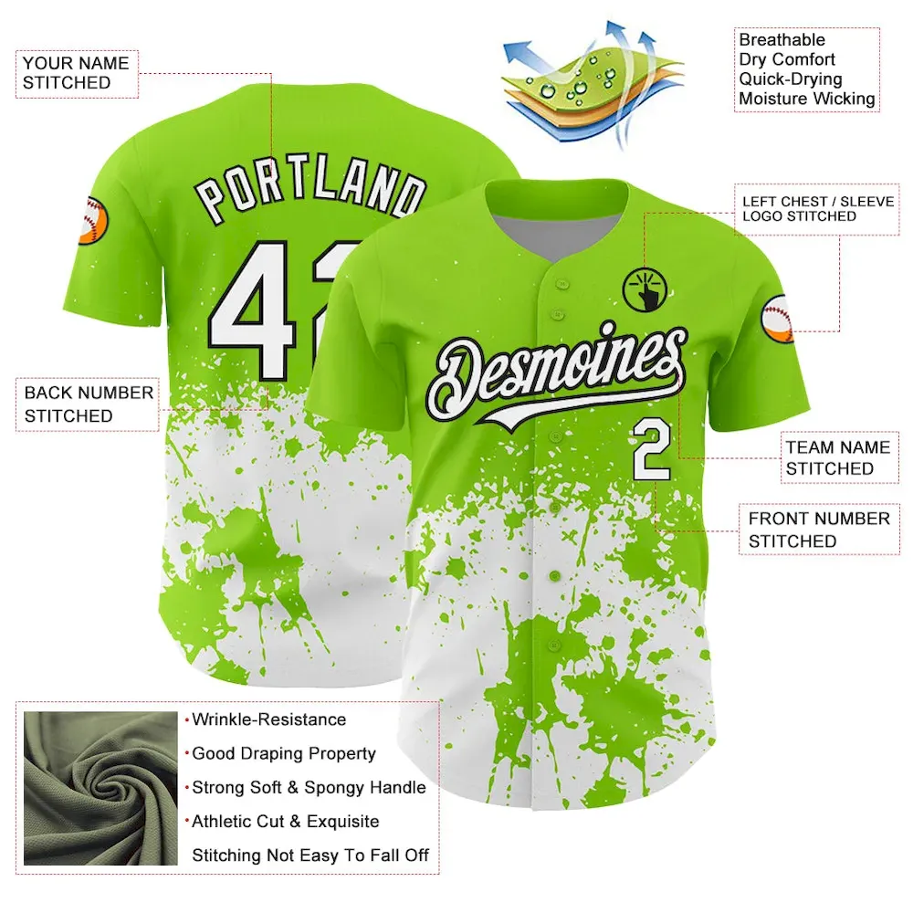Custom-Neon-Green-WhiteBlack-3D-Pattern-Design-Abstract-Splash-Grunge-Art-Authentic-Baseball-Jersey