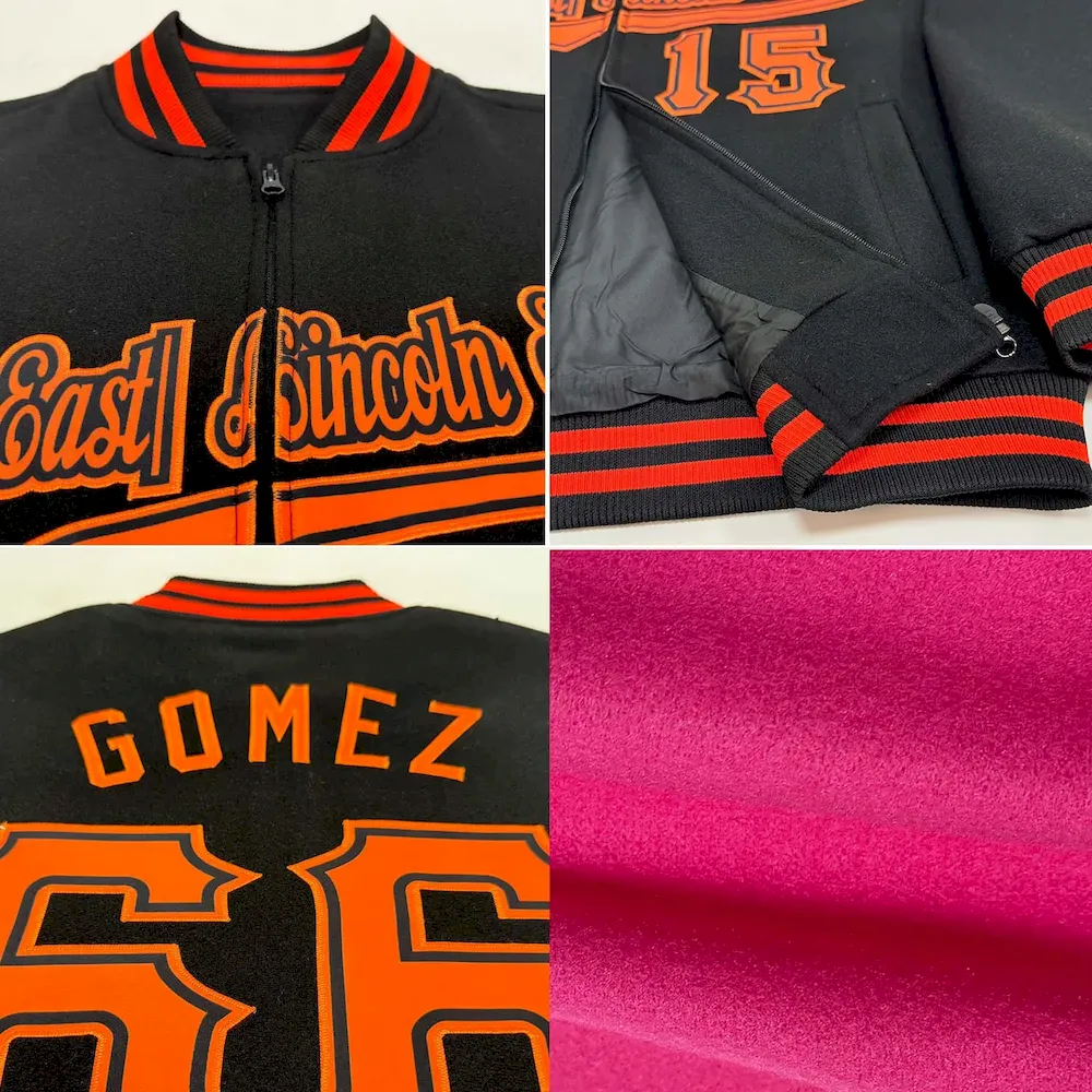 Custom Red Black-White Bomber Full-Snap Varsity Letterman Hoodie Jacket