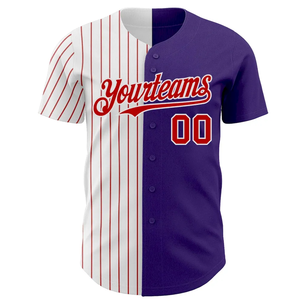 Custom Pink Purple Pinstripe White Two-Button Unisex Softball Jersey