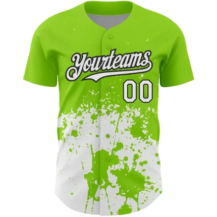 Custom Neon Green White-Black 3D Pattern Design Abstract Splash Grunge Art Authentic Baseball Jersey