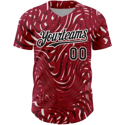 Custom Crimson Black-White 3D Pattern Design Abstract Fluid Authentic Baseball Jersey