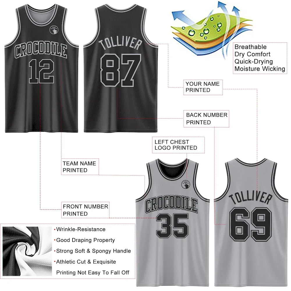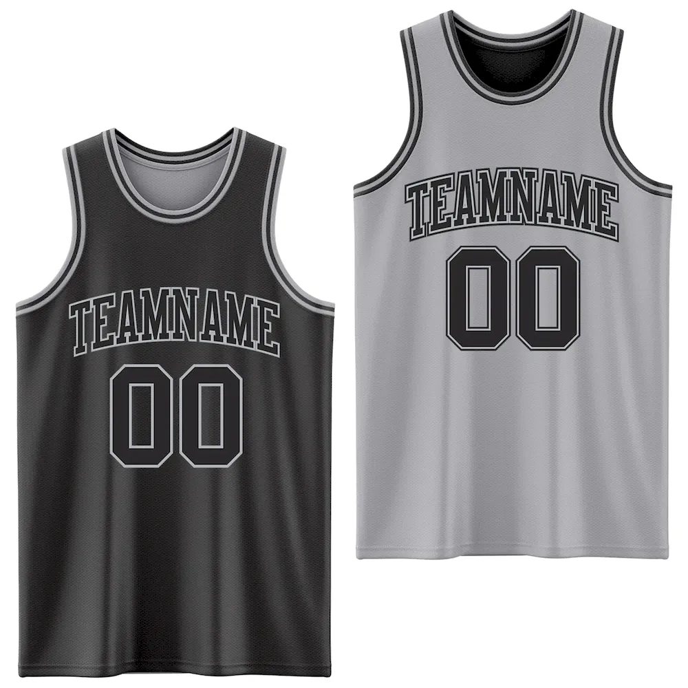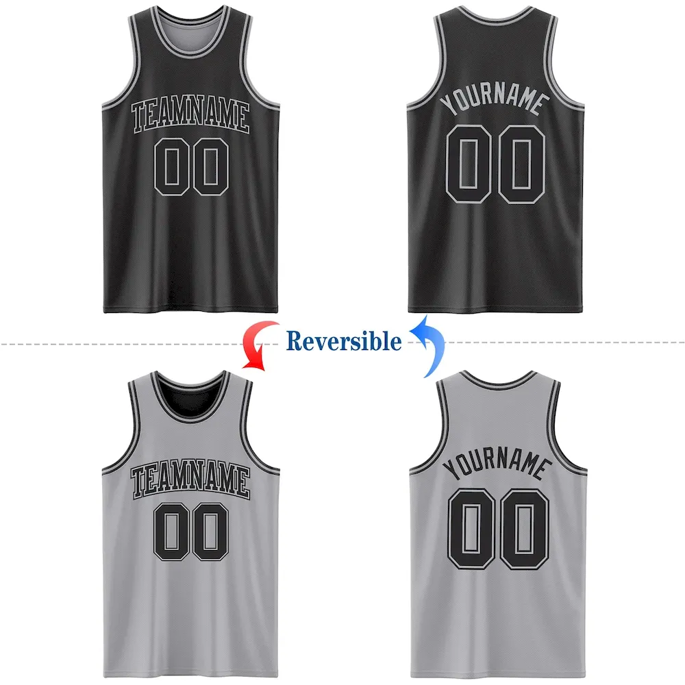 Custom Reversible Black Gray Double Side Basketball Jersey