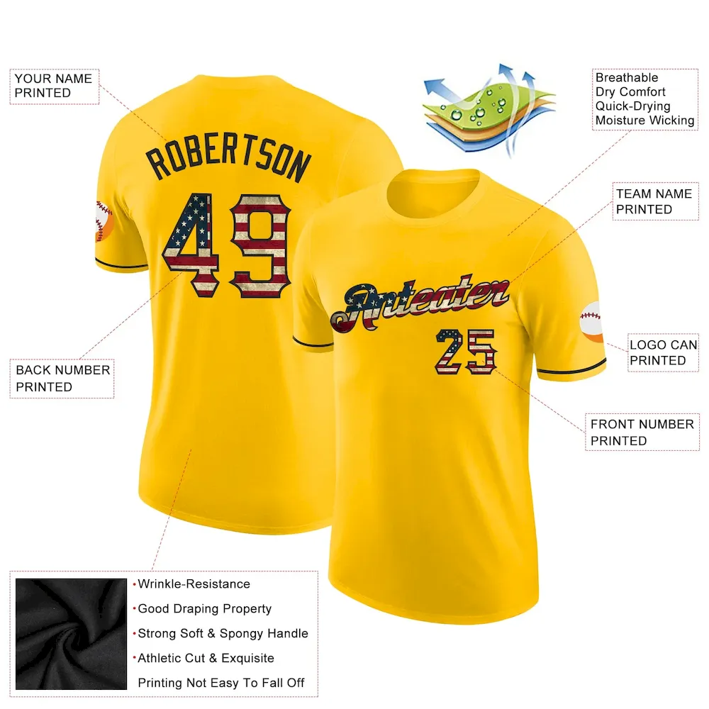 Custom-Yellow-Vintage-USA-FlagBlack-Performance-TShirt